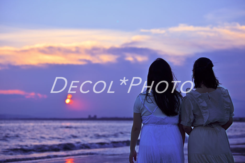 夕焼け空を背景に黄昏時の女子たちを撮らせていただきました。