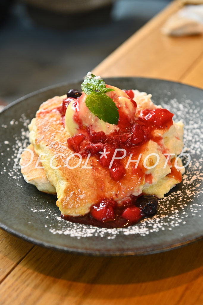 このパンケーキ、とてもフワフワで美味しかった。パンプディングに似てるかも?!